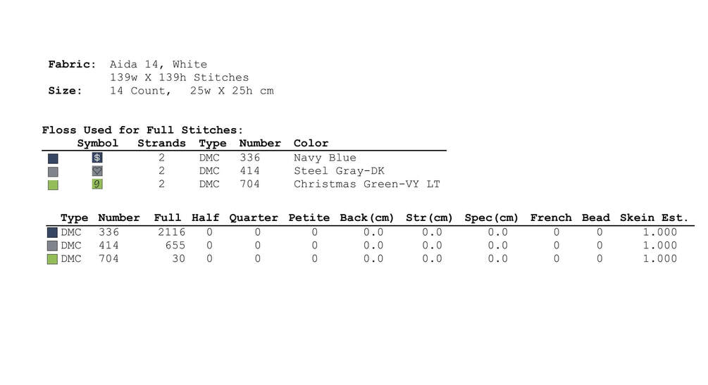 Stitches required for the cross stitch pattern: