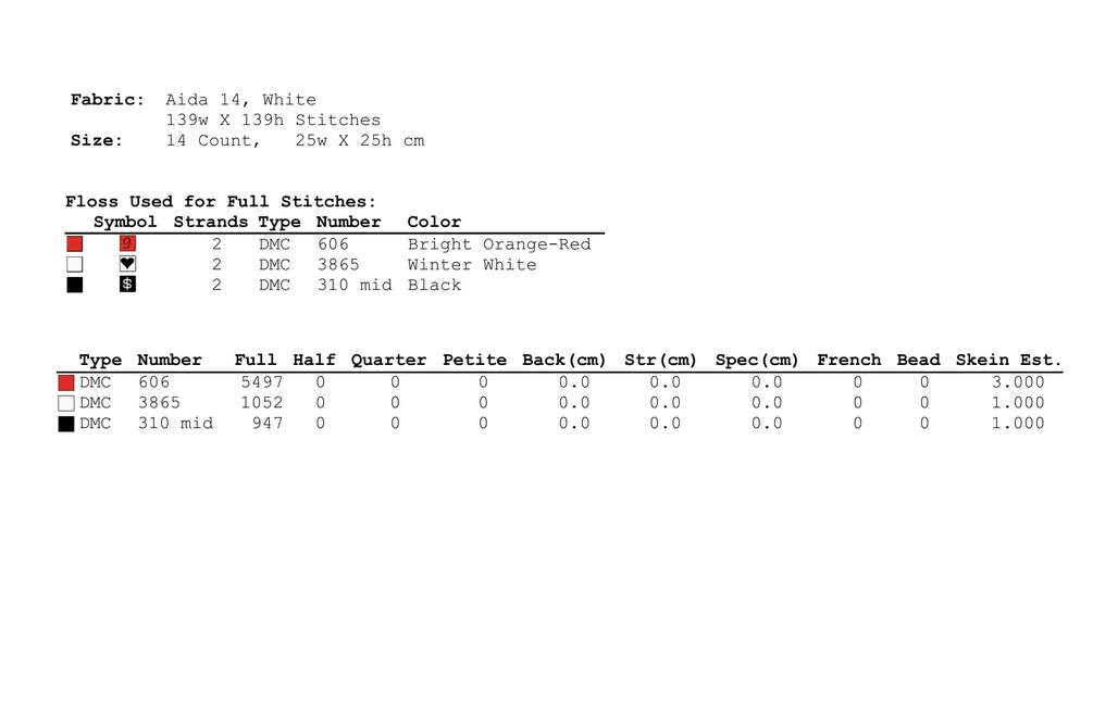 Stitches required for the cross stitch pattern: