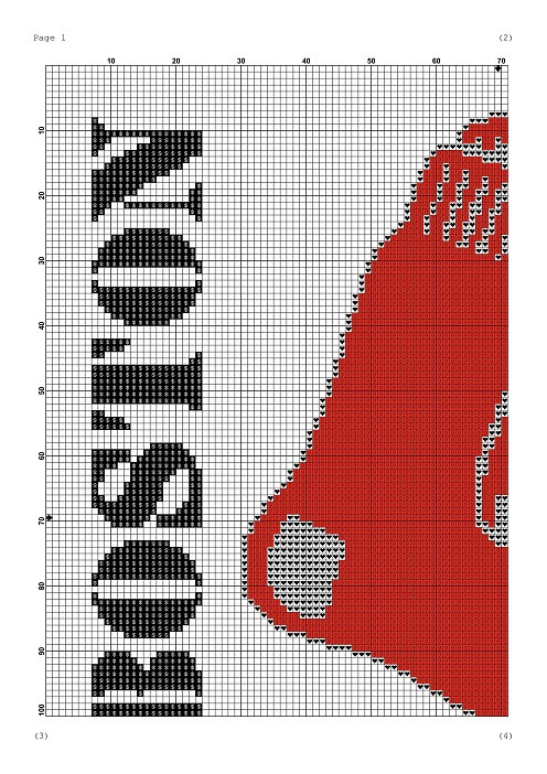 - and 4 pages with zoomed views of both the color and b&w patterns for simpler stitching.