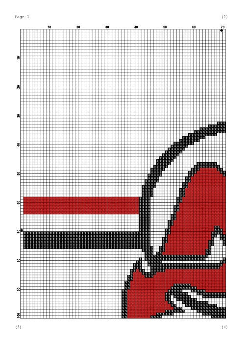 - and 4 pages with zoomed views of both the color and b&w patterns for simpler stitching.
