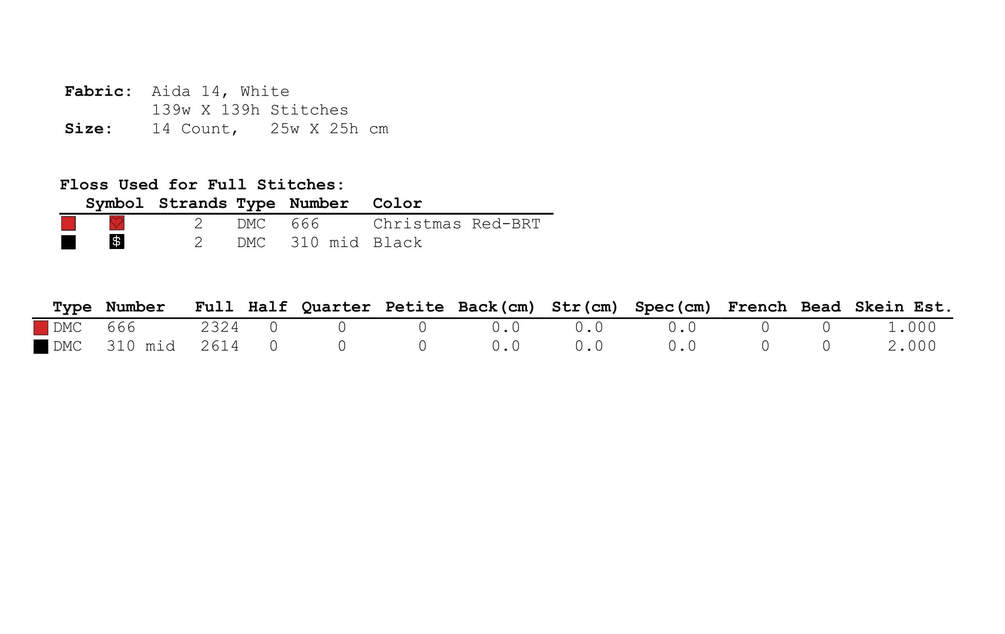 Stitches required for the cross stitch pattern: