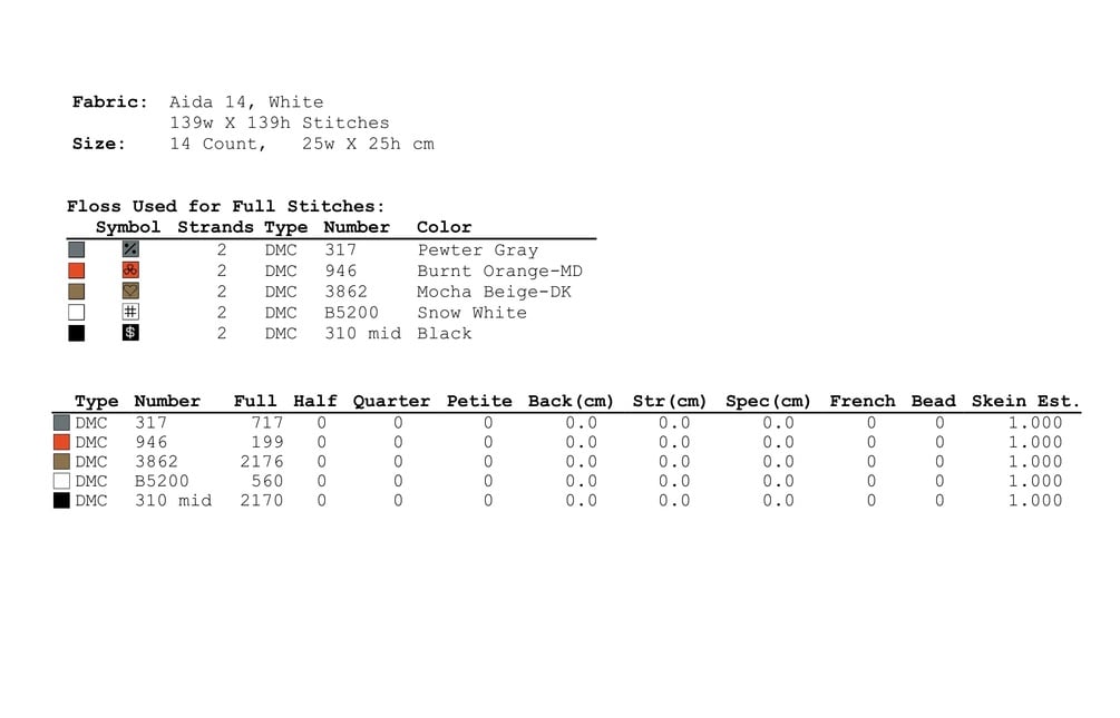 - Zoomed color symbols pattern at 4 pages for easy stitching;