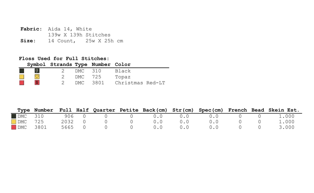 Stitches required for the cross stitch pattern: