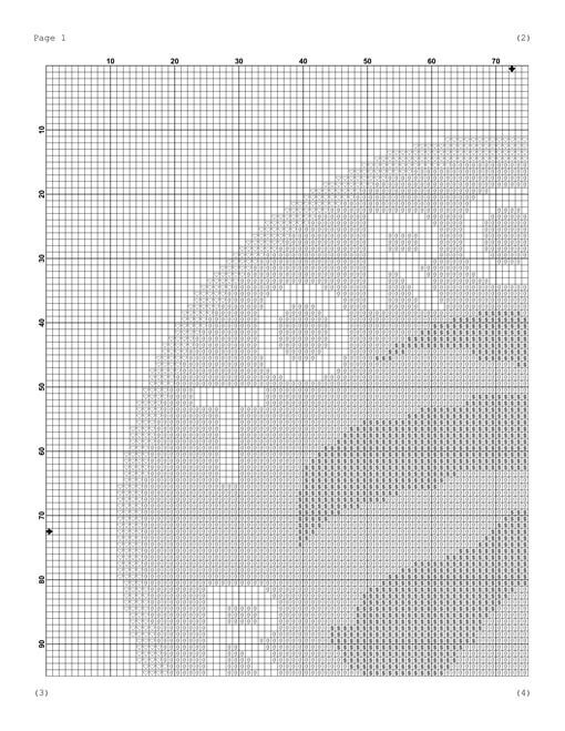 - and 4 pages with zoomed views of both the color and b&w patterns for simpler stitching.