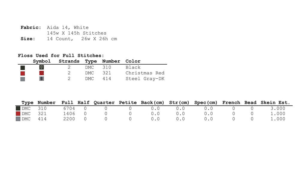 Stitches required for the cross stitch pattern: