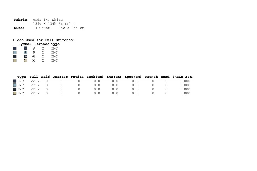 Stitches required for the cross stitch pattern: