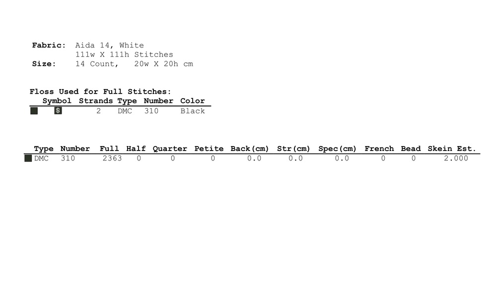 Stitches required for the cross stitch pattern: