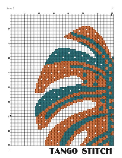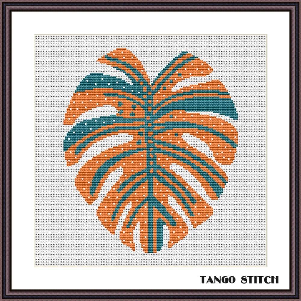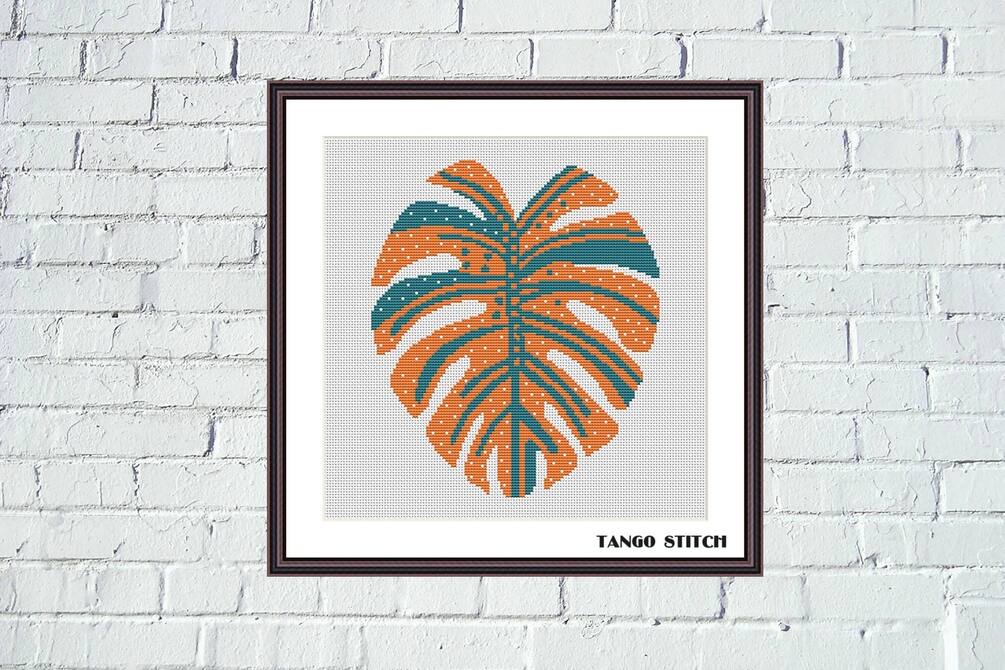 About Orange monstera leaf flower cross stitch pattern, Tango Stitch: