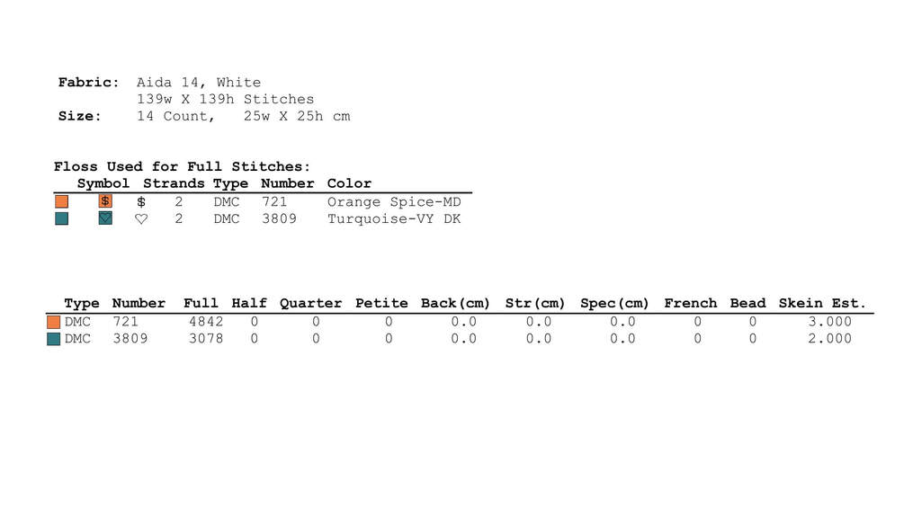 Stitches used for the cross stitch pattern: