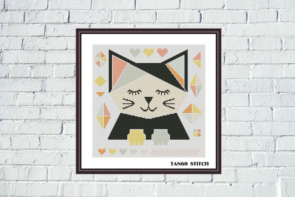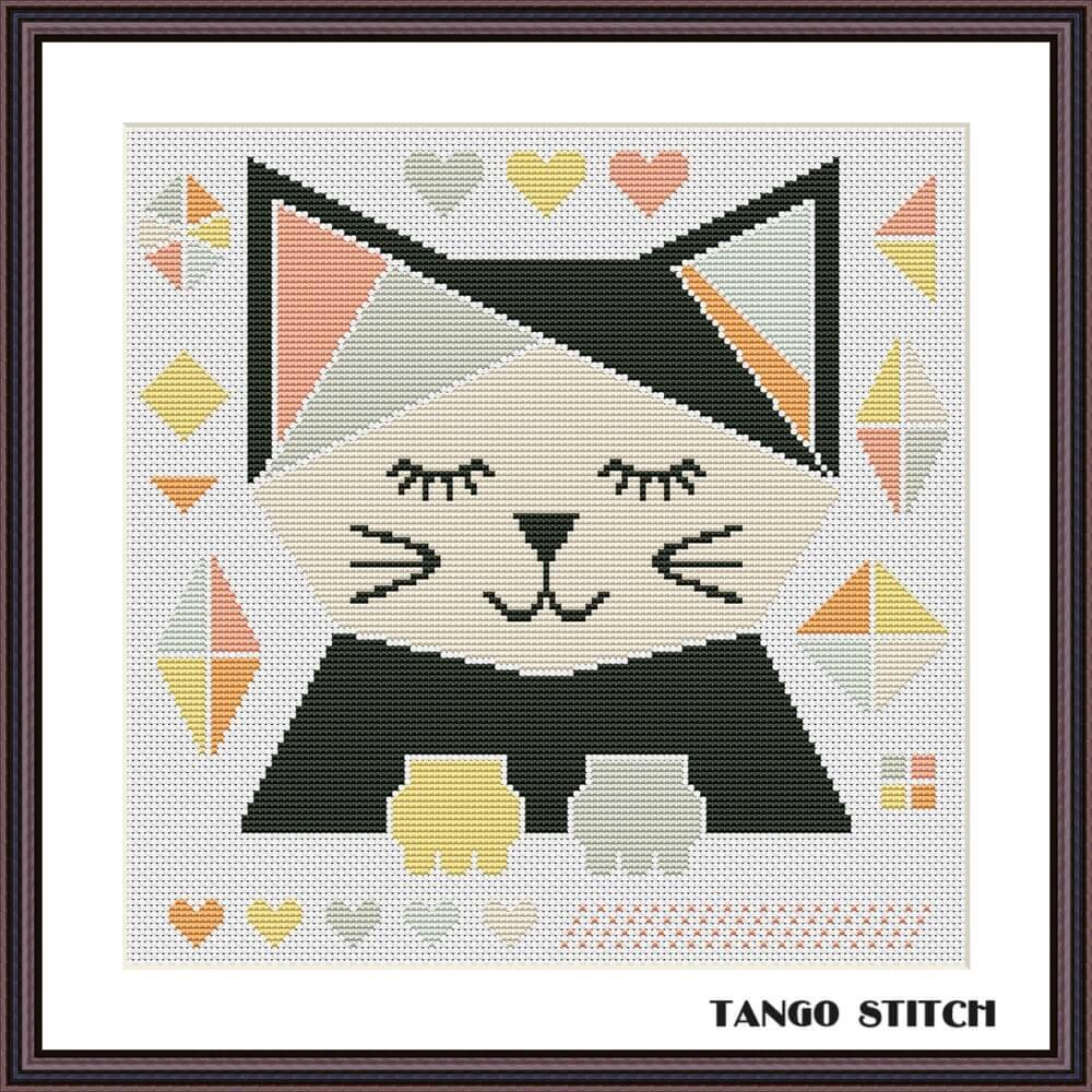 Geometric cute cat easy cross stitch pattern, Tango Stitch