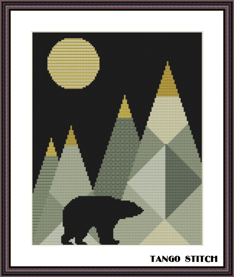 About Mountains bear night abstract cross stitch pattern, Tango Stitch:
