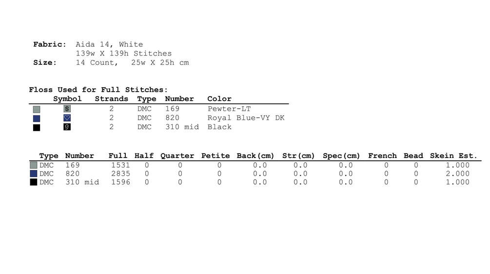 Stitches required for the cross stitch pattern:
