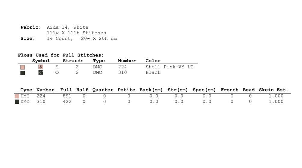 Stitches used for the cross stitch pattern: