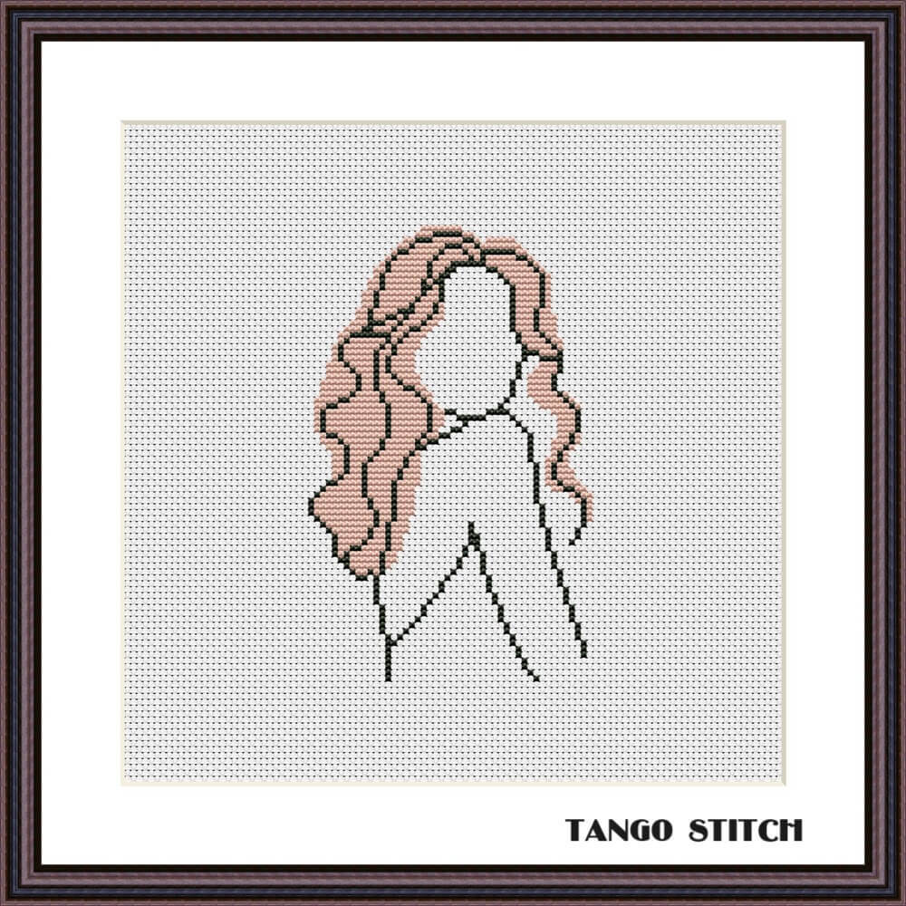 Minimalistic young woman abstract cross stitch pattern