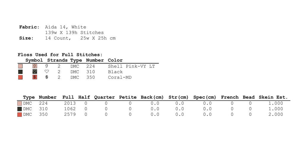 - and 4 pages with zoomed views of both the color and b&w patterns for simpler stitching.