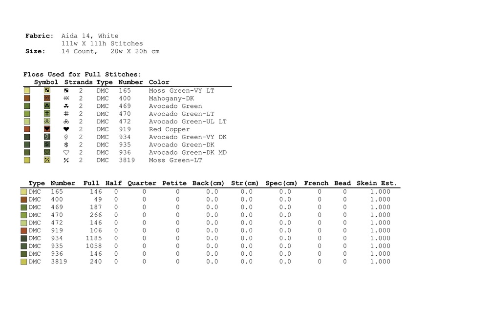 - zoomed color symbols pattern at 4 pages for easy stitching;
