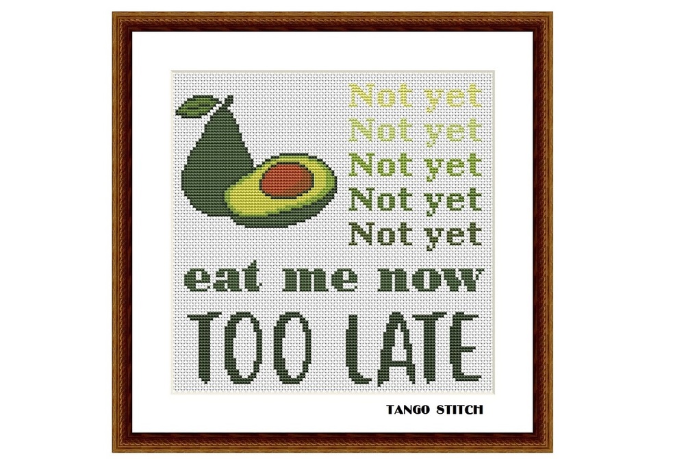 Too late funny avocado quote cross stitch hand embroidery pattern, Tango Stitch (1018)
