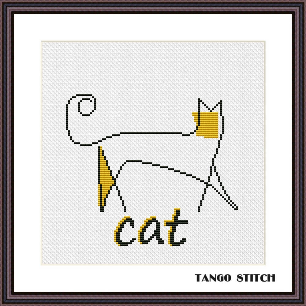 Minimalistic yellow cat cross stitch pattern, Tango Stitch