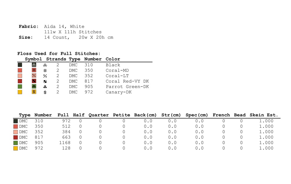 Stitches used for the cross stitch pattern: