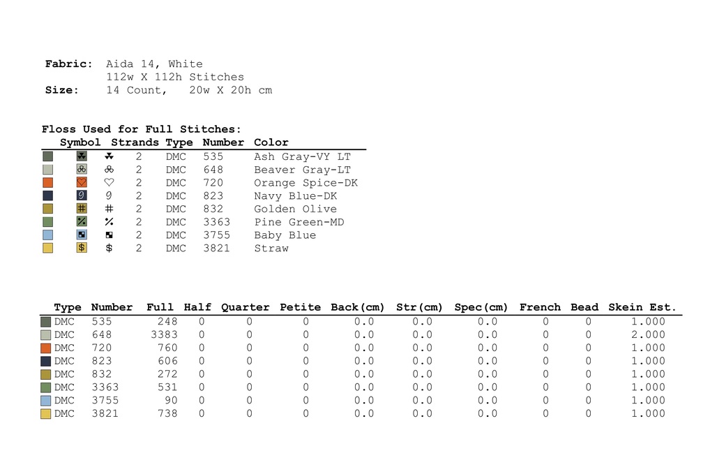 The embroidery design requires full crosses stitches.