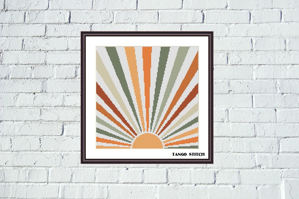 Vintage geometric boho sunshine easy cross stitch pattern, Tango Stitch