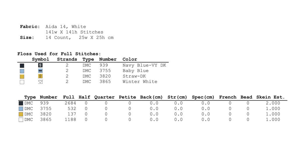 This cross stitch pattern features only full stitches, making it suitable for both novice and experienced embroiderers.