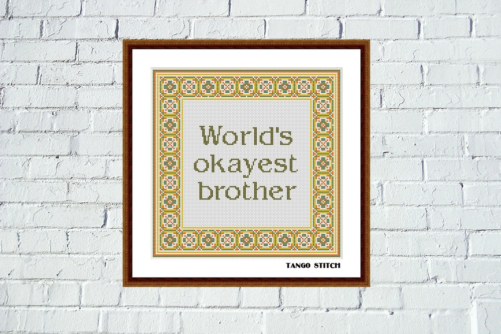Funny Okayest brother birthday cross stitch needlepoint pattern, Tango Stitch (1023)